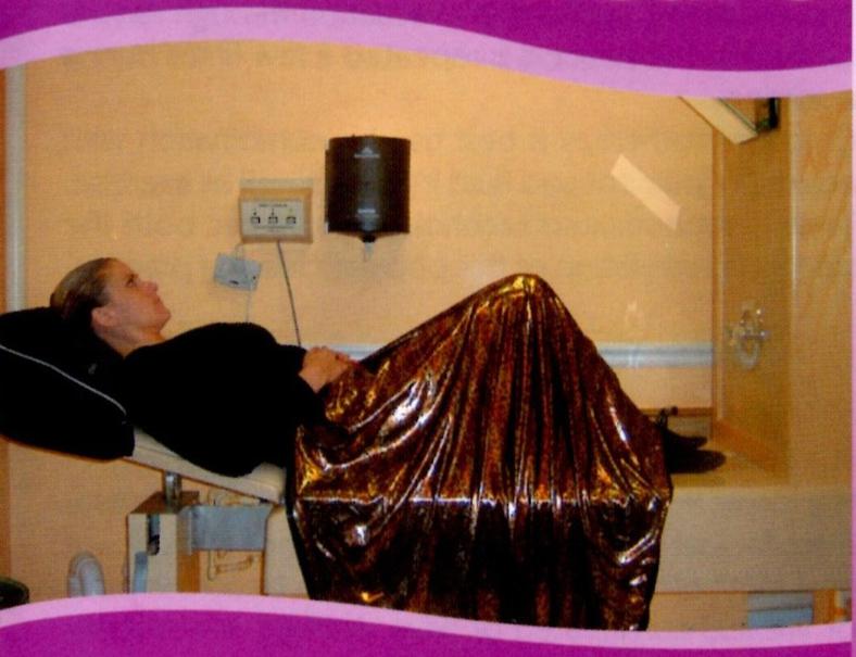 I call this walking without walking, because it puts you into the motion of walking while you are relaxing on a cushion of air. The session last for 15 minutes. If I do this treatment twice I am asleep. Works great with a Colon Hydrotherapy Session to relax the muscles around the colon to allow the warm water to penetrate the colon with less stress.